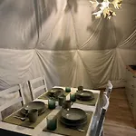 Overlooking the garden, the 6-room Tatra Glamp Ranczo Targowka - Glampy I Domki Apartment Malanow welcomes guests with a Jacuzzi for a more enjoyable stay. Lodz Wladyslaw Reymont airport is 90 km away from the apartment.